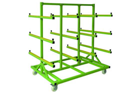 紗網(wǎng)片存放車 紗網(wǎng)片存放車也是屬于一種周轉車,但主要是用于存放紗網(wǎng)片這類物料的,可以用來臨時周轉,也可以用于長期存放: 產品特點 1.立式插入式...